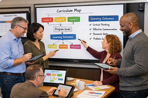 Link lesson plans, syllabi, teaching schedules, and academic calendars to outcomes.