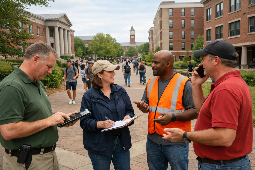 Centralized incident handling, access governance, and emergency coordination across the campus.