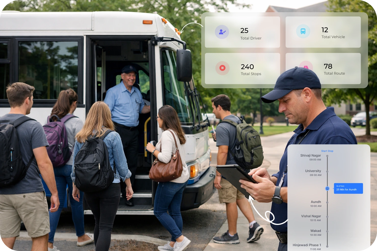 Digitally optimized routes, fleets, schedules, and live vehicle tracking for reliable campus movement.