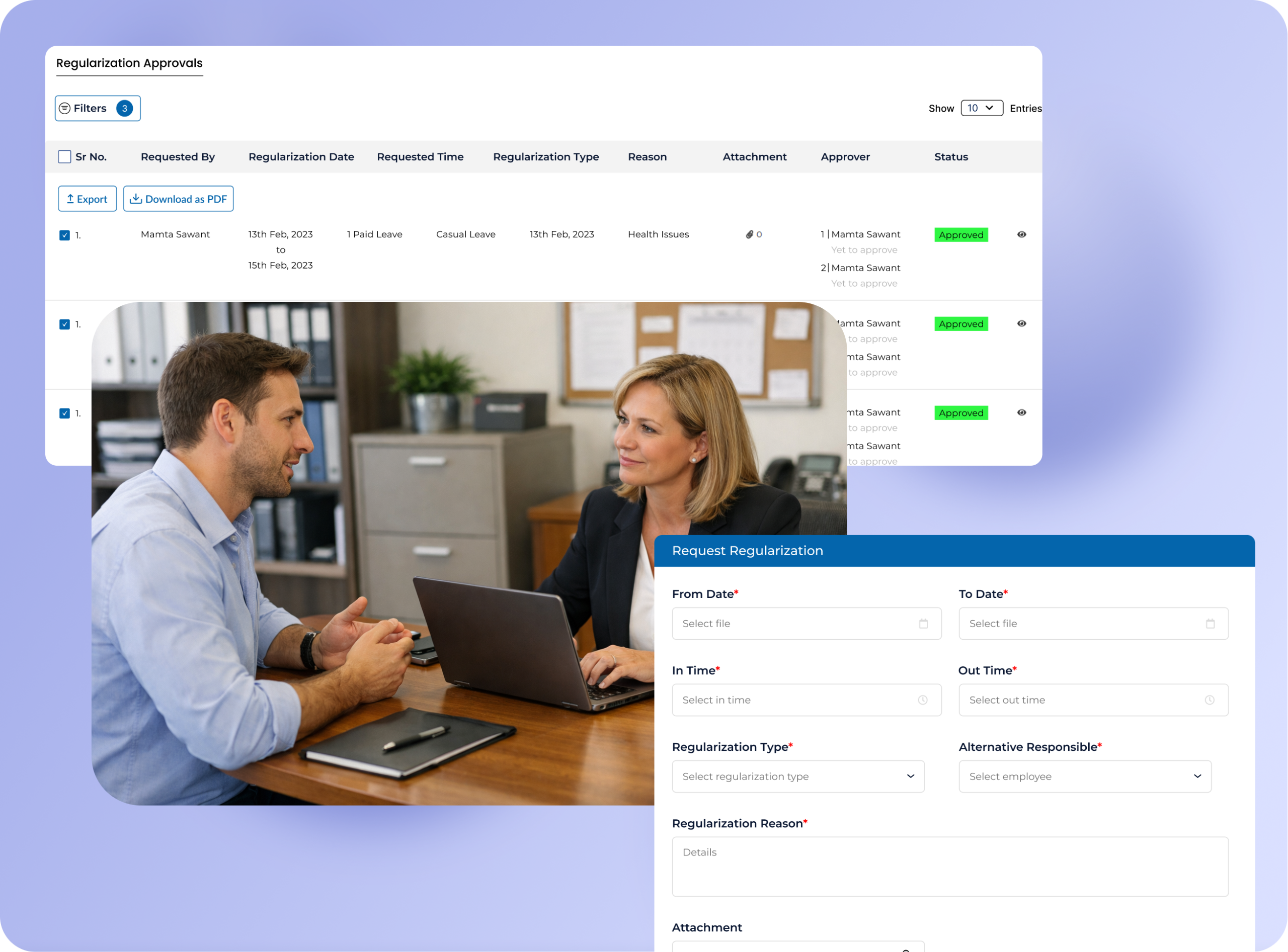 Enable seamless communication and coordination between HR teams, administrators, and staff through a centralized system that improves transparency and workplace efficiency.