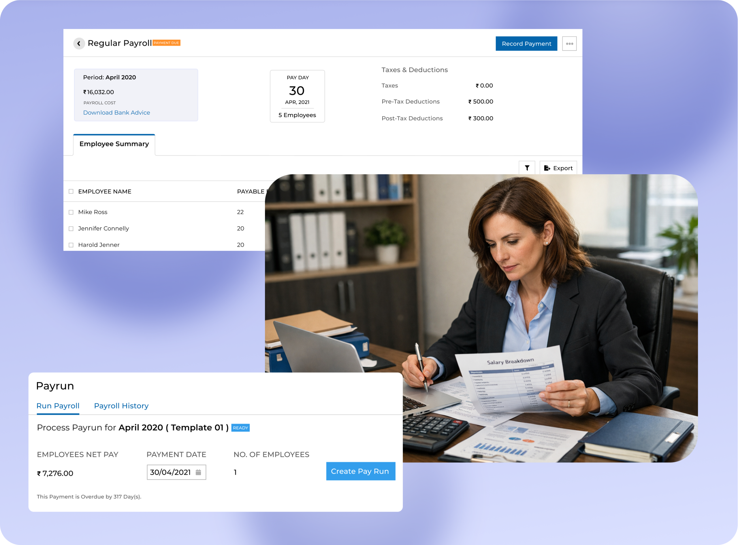 - Payroll payment recording and history tracking