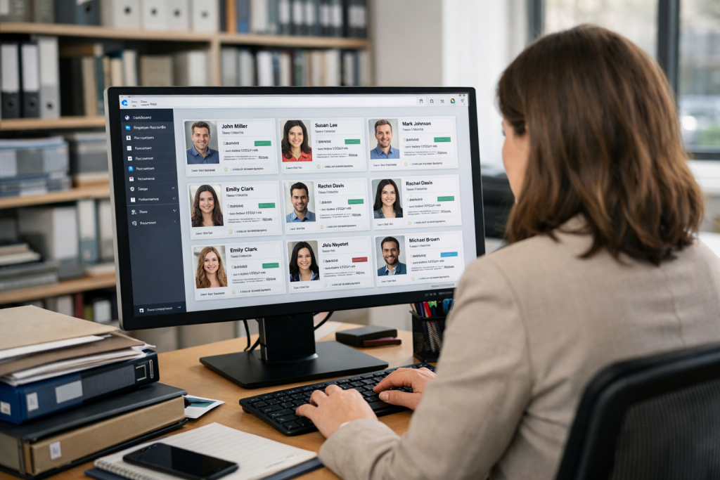 HRMS software streamlines employee records, attendance tracking, payroll processing, and performance management to improve HR productivity.