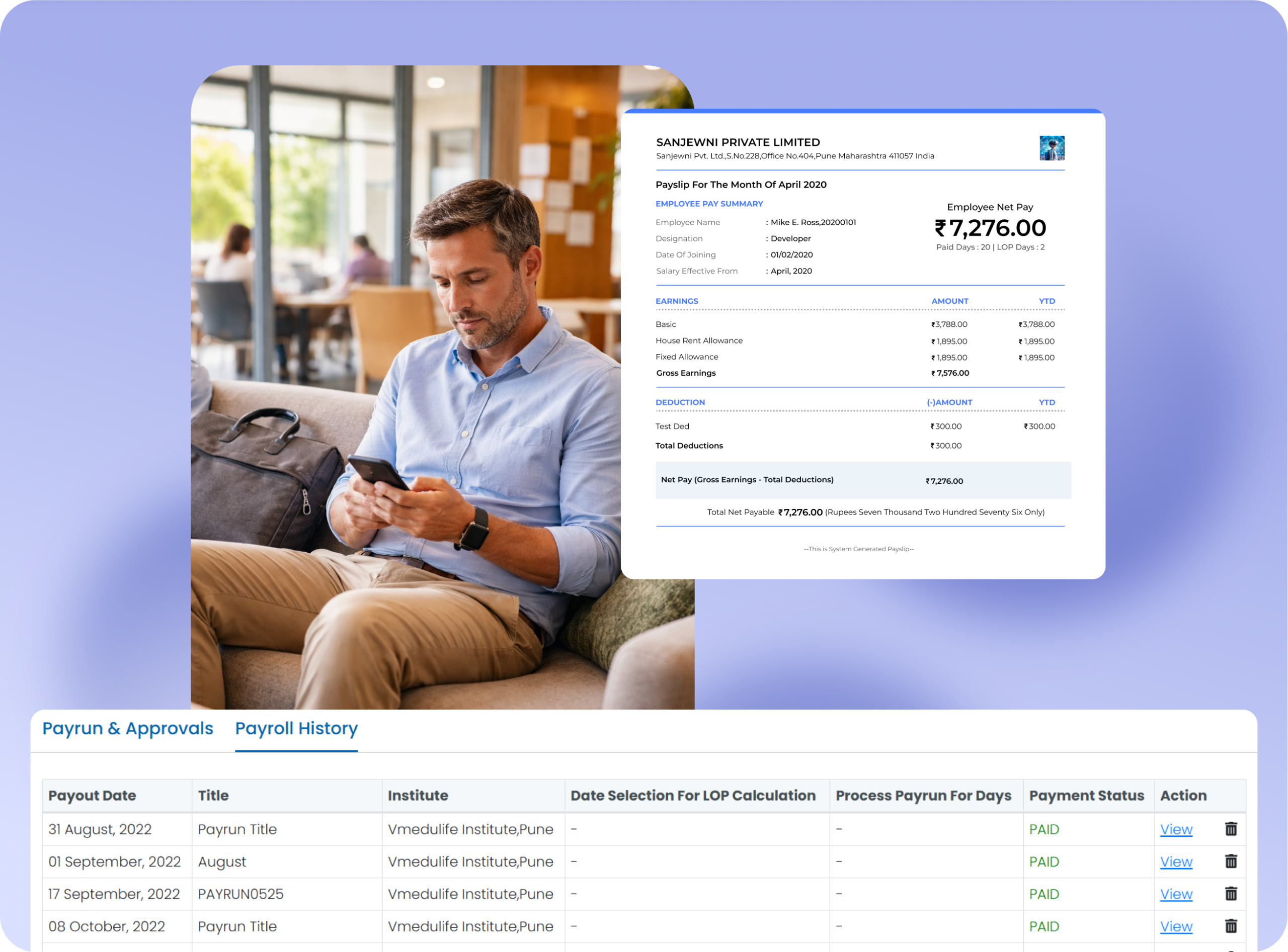 - Digital payslip generation for employees