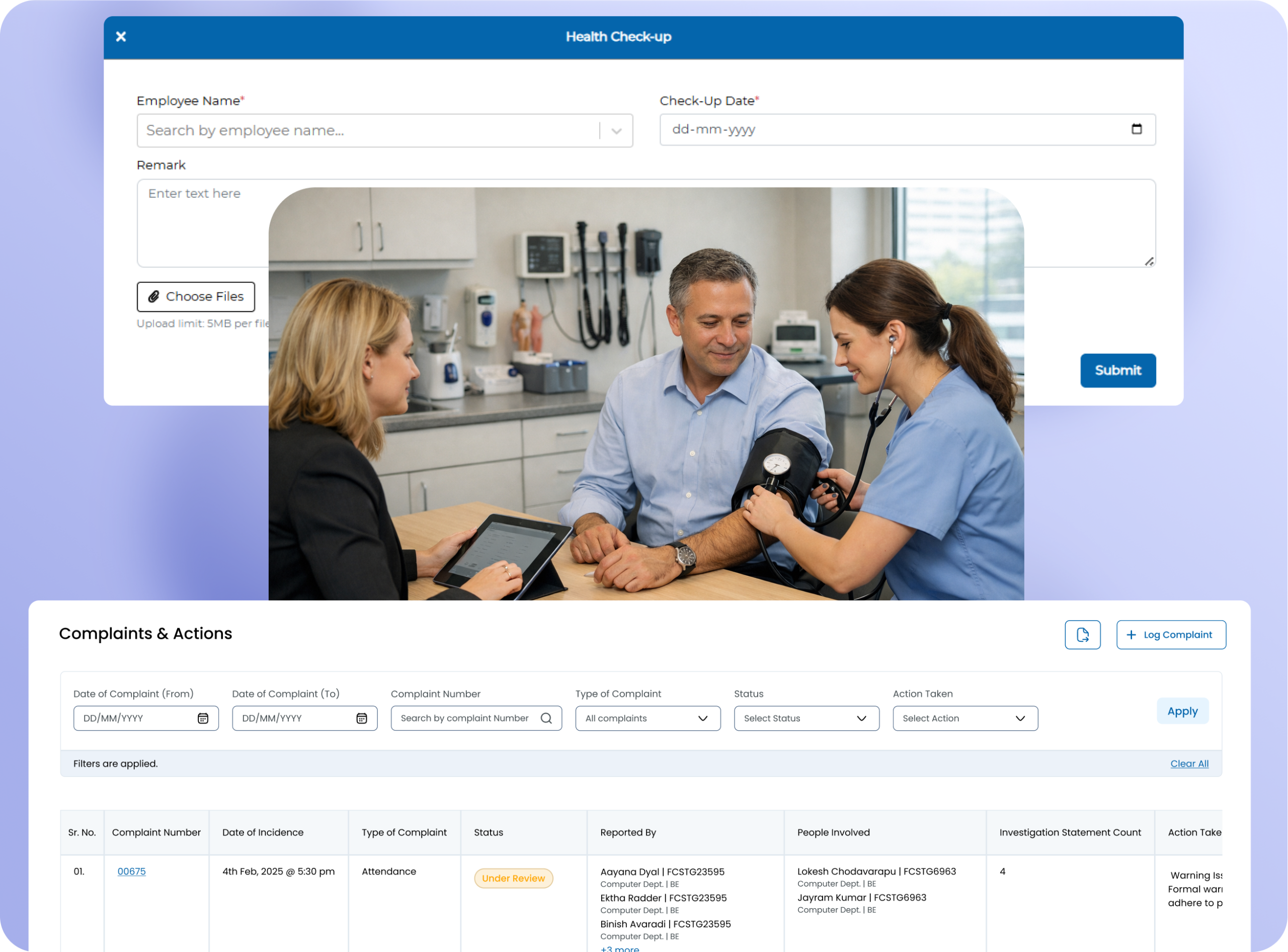 - Record employee health check-up and medical information