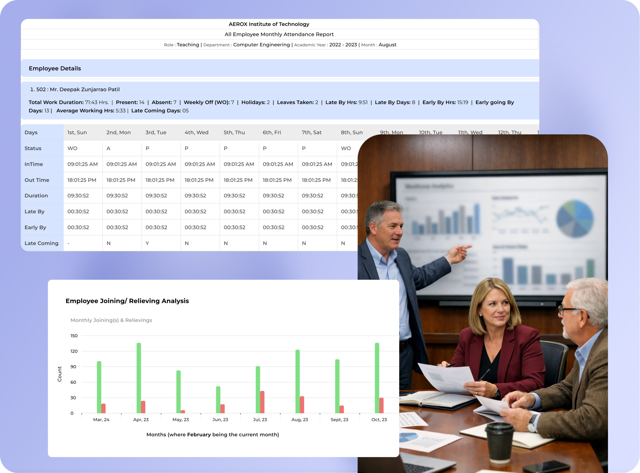 - Leave utilization and attendance summary reports