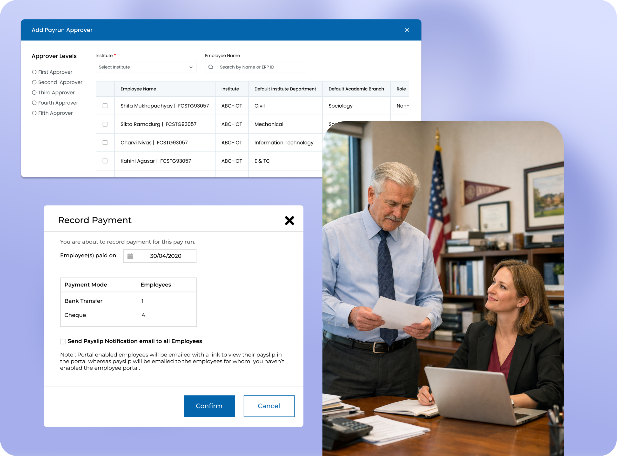 - Multi-level payroll approval workflows