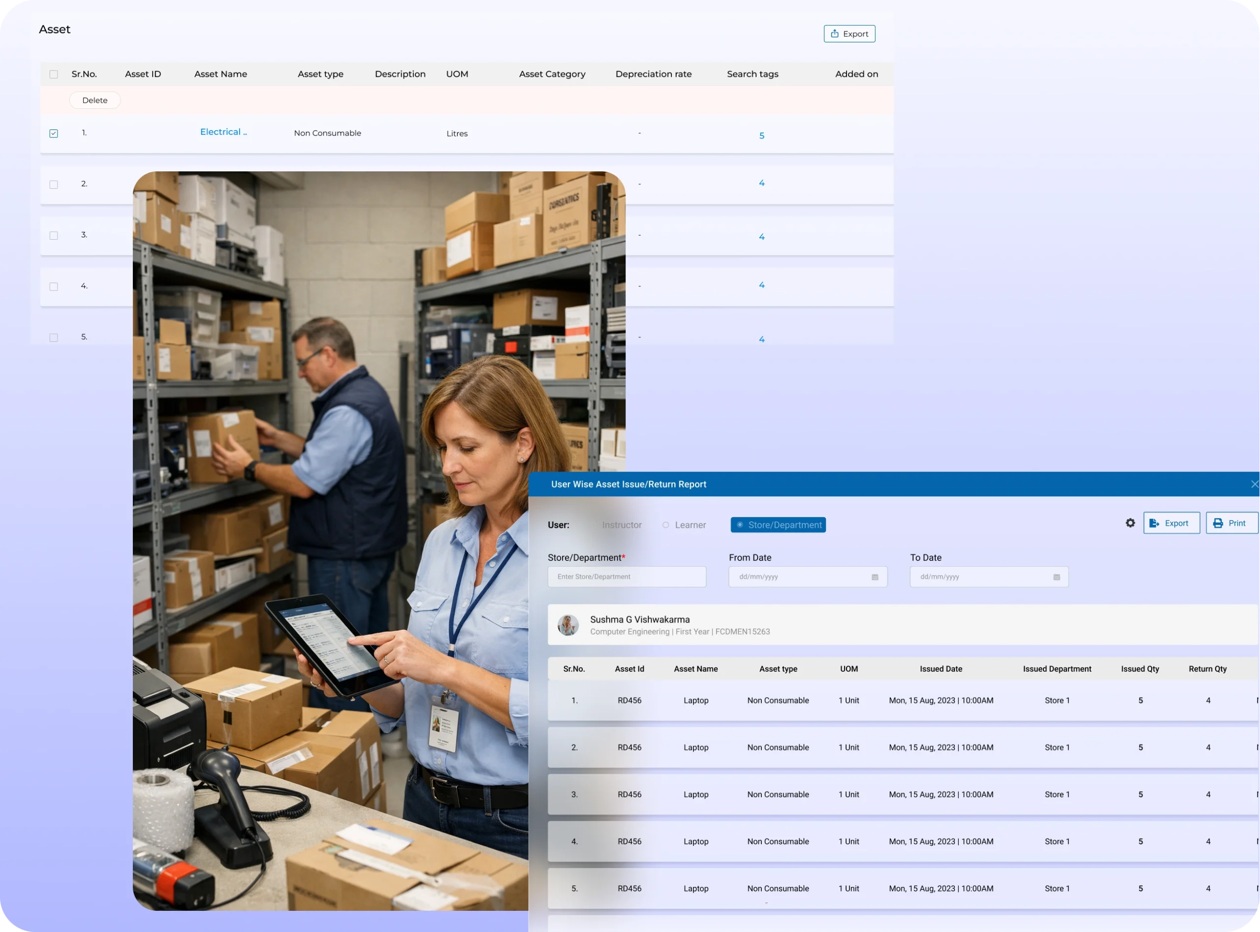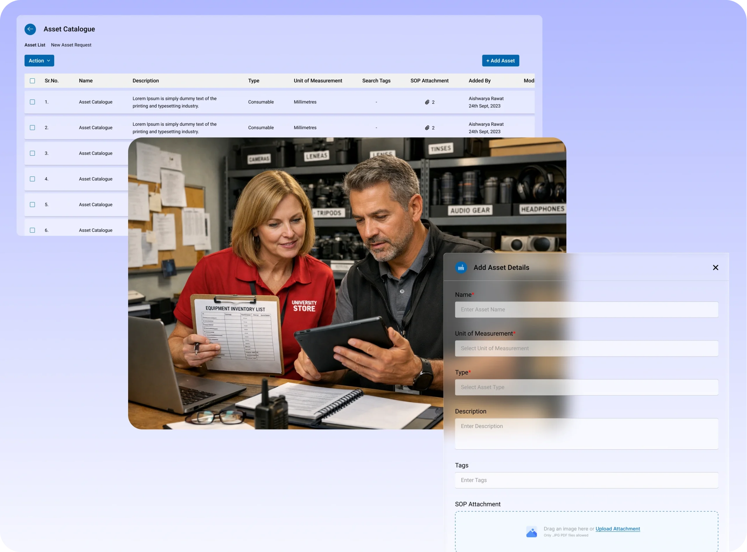 Track equipment, inventory, and asset allocation across departments from a single platform.