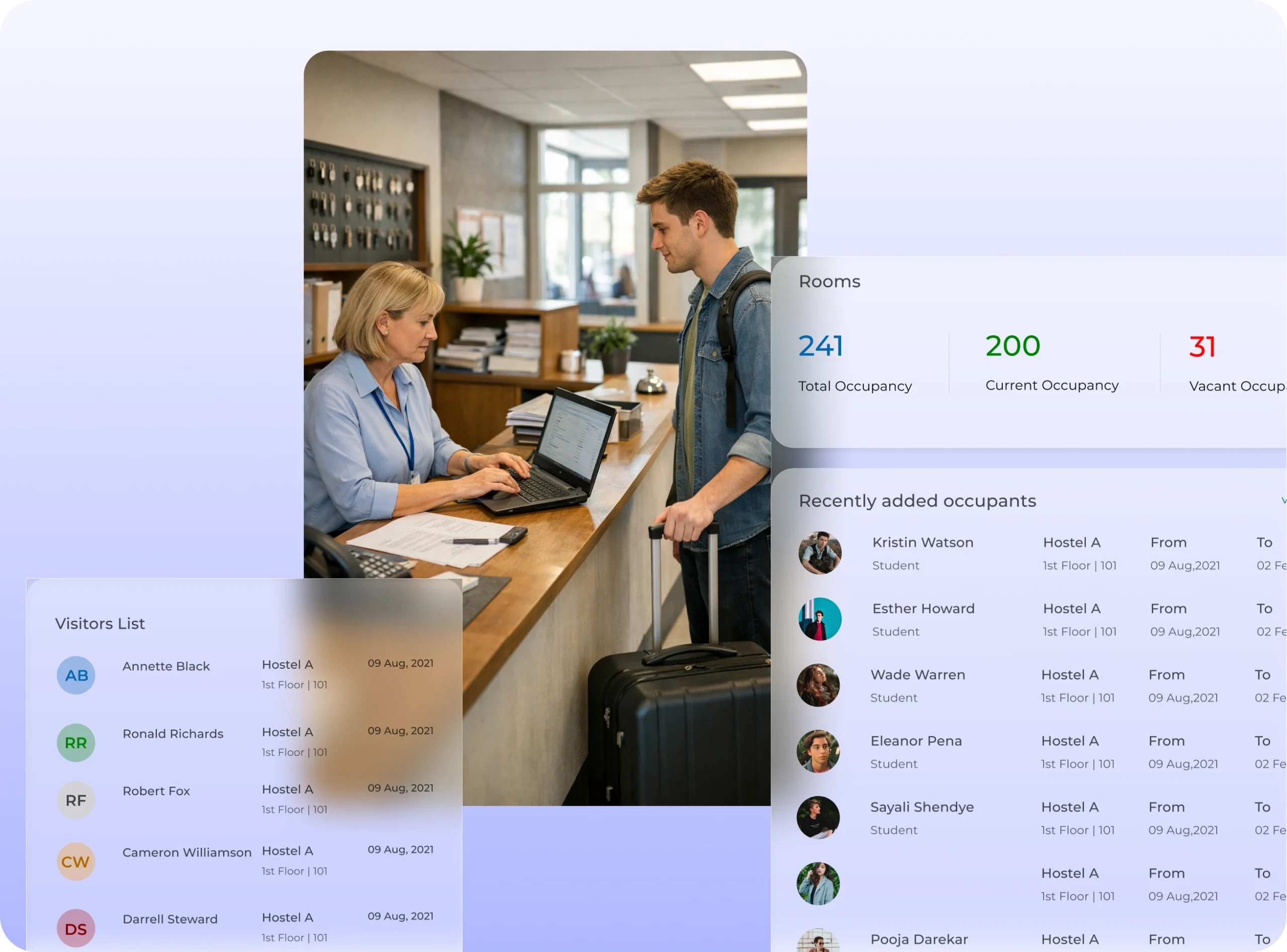 - Allocate rooms and manage occupancy records