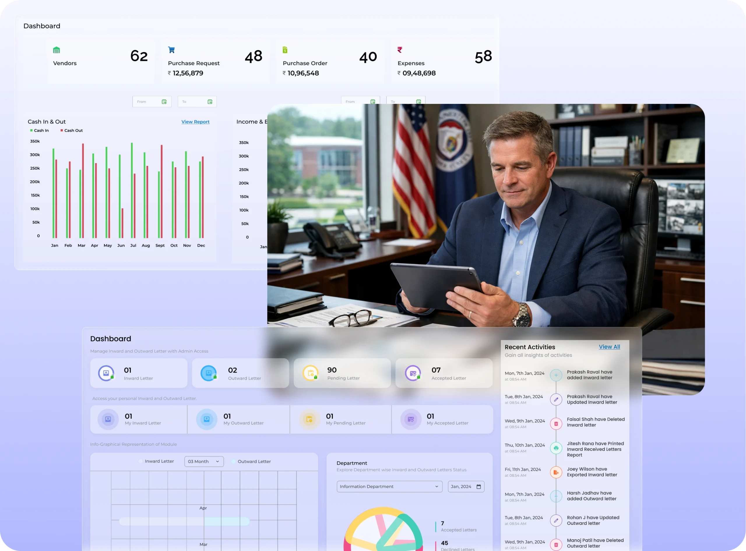 Automate routine administrative tasks, track departmental activities, and manage office operations through an integrated digital system designed to enhance productivity.