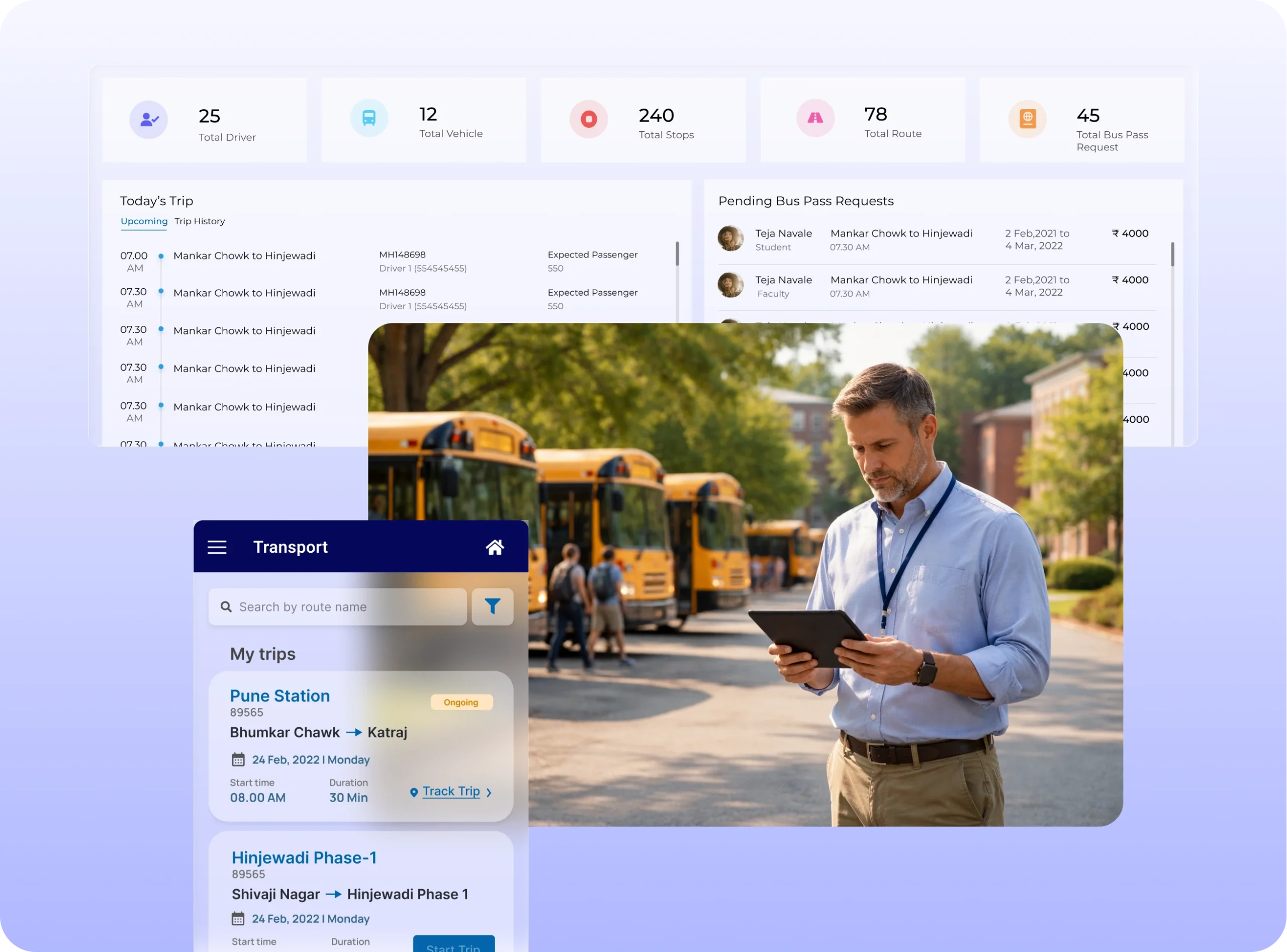 Manage institutional transport operations with structured routing, allocation, and monitoring.