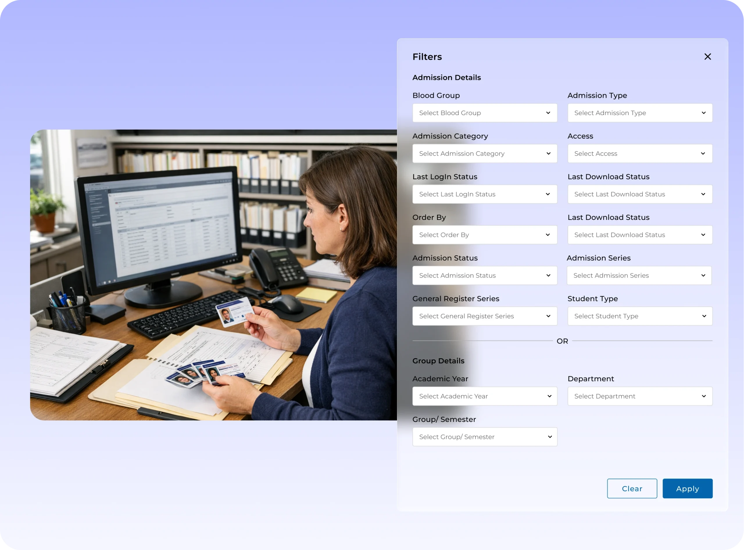 Access student information quickly through structured filtering and search tools.