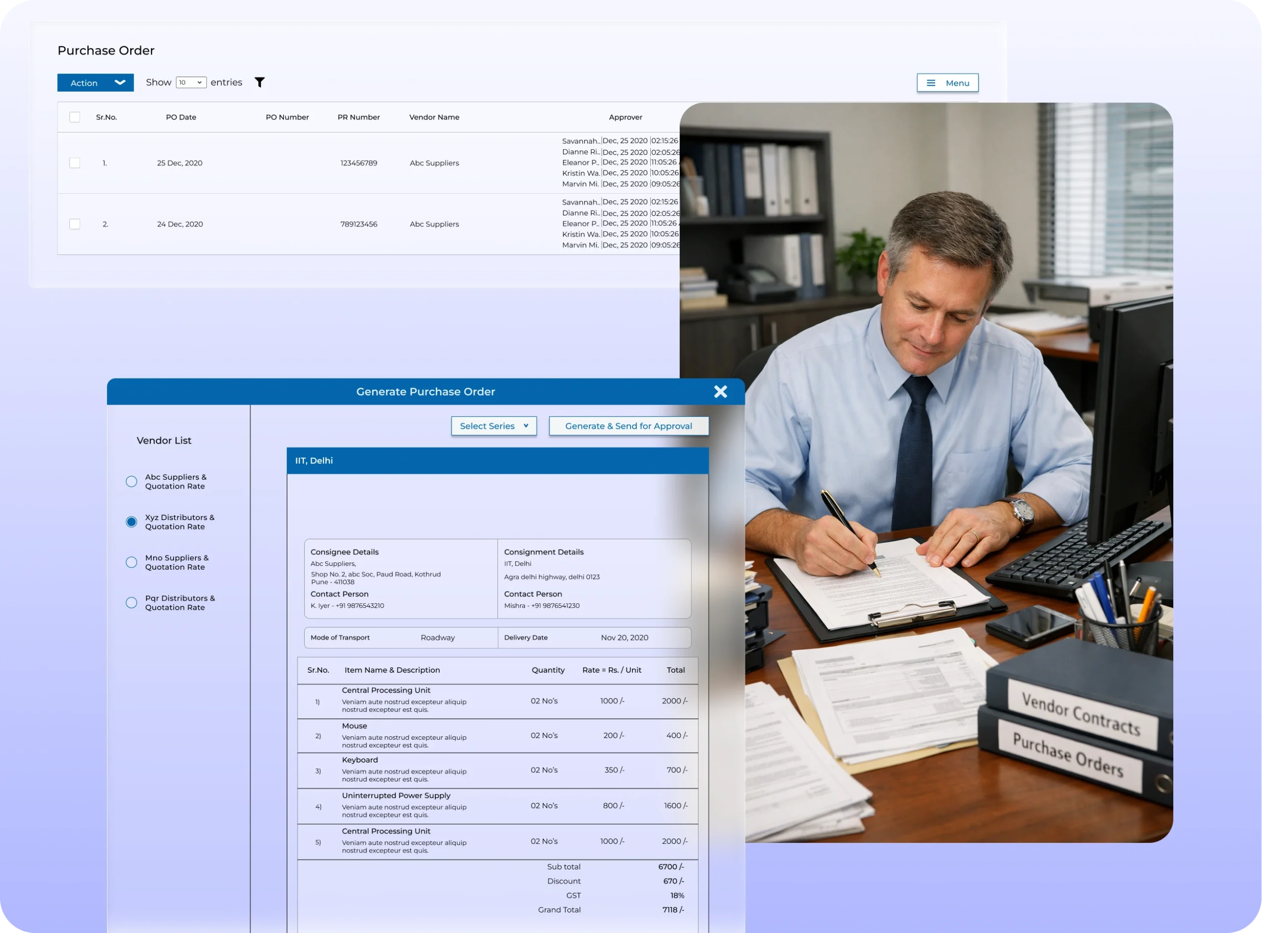 Generate purchase orders automatically and manage approvals through structured workflows.