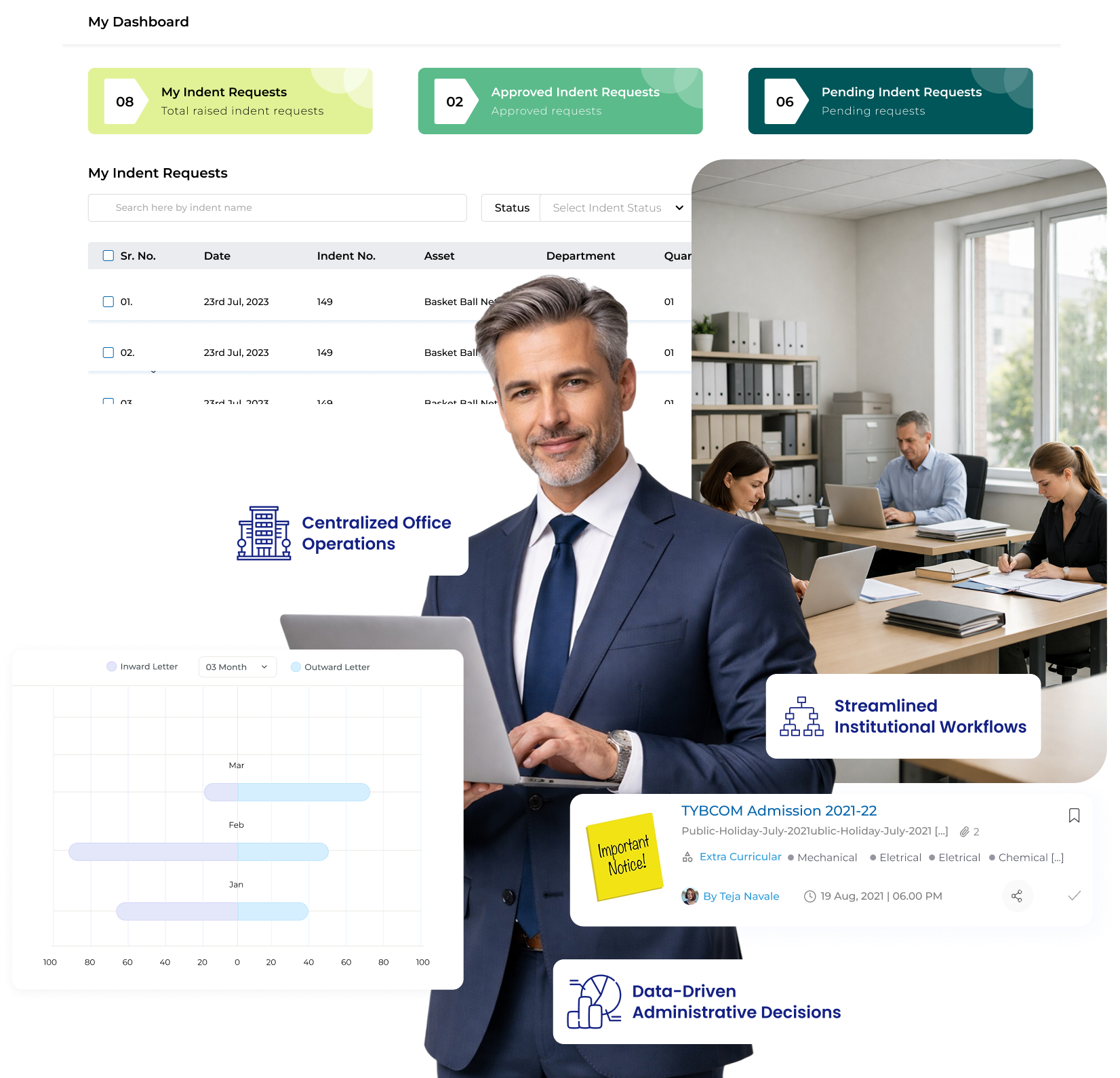 Transform institutional office operations with intelligent automation and data-driven workflows.